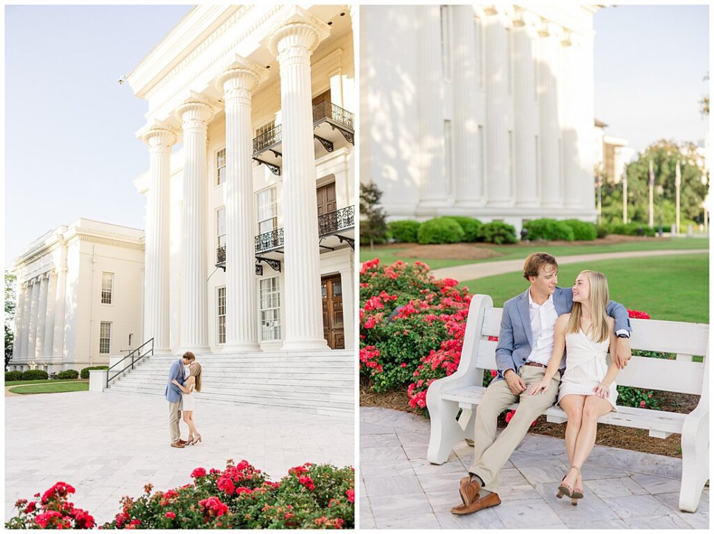 After exploring Jackson Lake Island, we headed to the Montgomery State Capitol for a completely different vibe—more formal and elegant, but just as gorgeous. The architecture is always stunning, but the real showstopper this time? The spring flowers! They were in full bloom and added so much color and life to the session. It felt like we were in a garden straight out of a storybook.